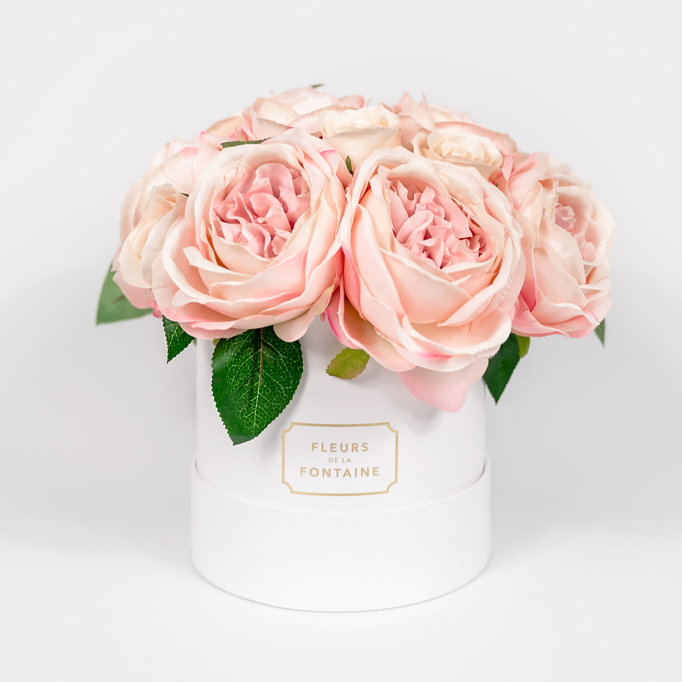 Please note: These are artificial flowers beautifully presented in a cardboard hat box. With a small amount of care they maintain their finish timelessly.