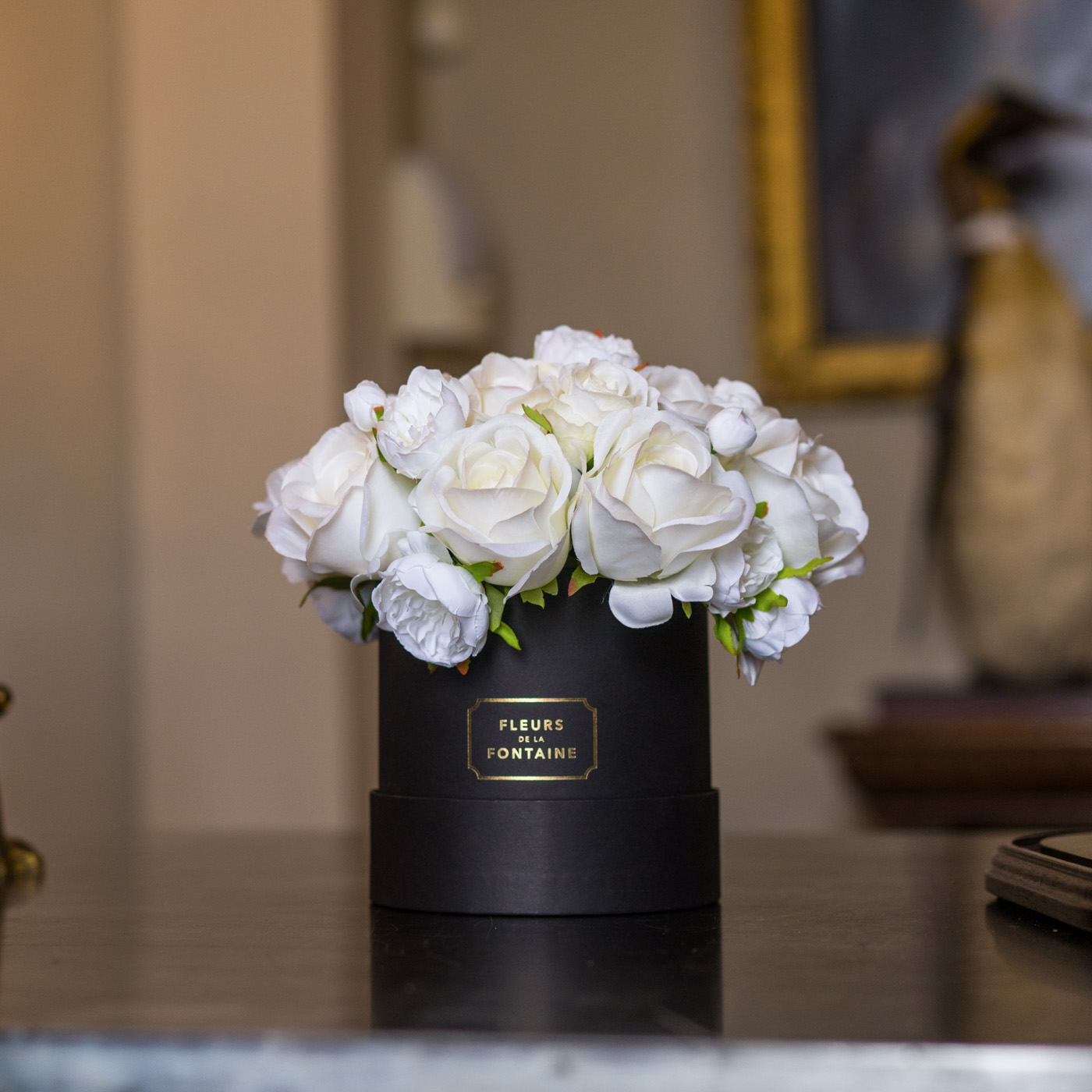 Please note: These are artificial flowers beautifully presented in a cardboard hat box. With a small amount of care they maintain their finish timelessly.